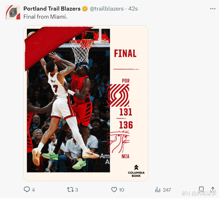 北京时间11月9日,开拓者131-136被热火逆转无缘连胜。这场比赛是极限拉锯战,首节开拓者领先3分,次节打完落后7分,三节打完开拓者还落后3分,末节两队比分交替上升打到决胜时刻还是开拓者稍逊一筹。