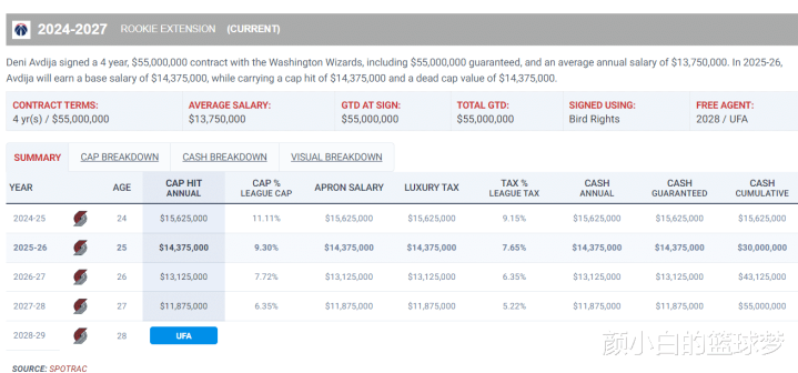 阿夫迪亚今年的薪水是1437万,而且他还有三年合同,余下两年是1312万、1187万,没错他四年5500万的合同还是递减合同,他就拿着这份廉价合同打成了开拓者的第一球星,他每一场都要操持这两亿的心,本赛季他大概率要进入全明星了。 |