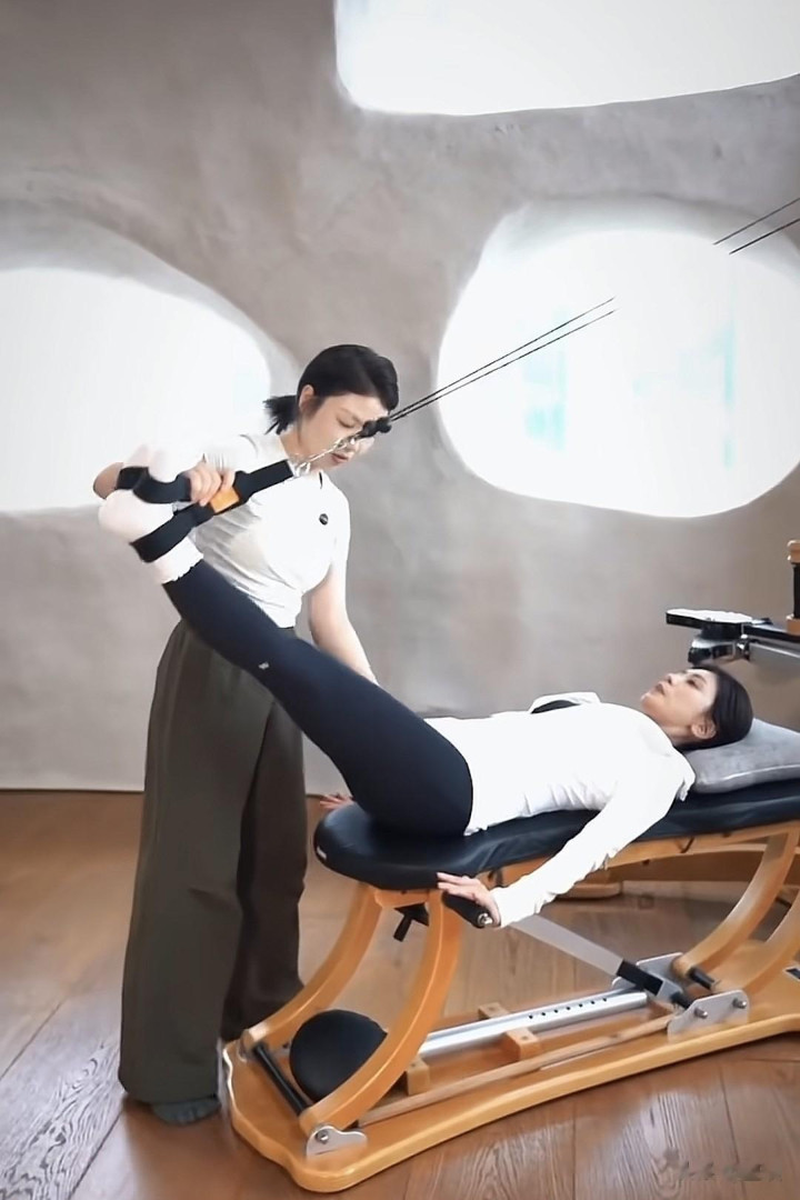 跟着贾静雯练普拉提啦!看女神在专业辅助下,优雅开启普拉提训练模式,器械助力,精准雕琢线条,每一个动作都藏着对生活的热爱与对自我的雕琢。