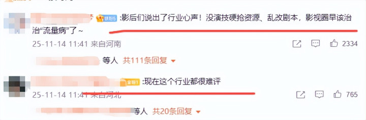影后们说得对,但流量乱象真能改吗? 这事在网上吵翻了天。 有人力挺影后:“早就该有人说真话了!”也有流量粉丝不服:“我们哥哥数据好怎么了?市场说了算!”还有业内人士爆料:“现在一部剧70%预算都给了流量演员,编剧服化道加起来才15%,能拍出好东西才怪!”