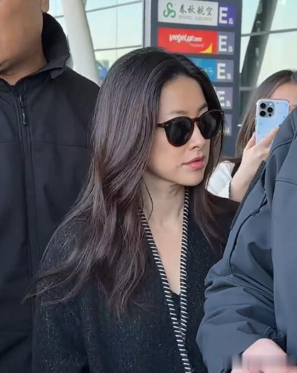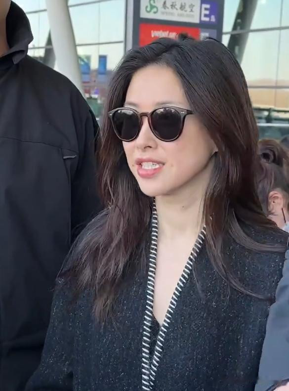 她带着墨镜亮相在机场感觉一点明星的架子都没有,特别是笑起来的时候那一边一个的小酒窝真是太有感染力了, 别看已经40多岁了,要是光看她的面部就像是一个30岁的人一样,不得不说还是明星保养的好啊。