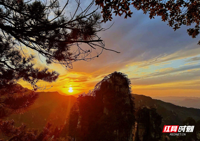 日暮时分,夕阳借晴朗天幕铺展暖橙光晕,松枝剪影嵌在渐变天色里,徒步的疲惫被这方山野黄昏轻轻抚平。 作为张家界“险、奇、古”兼具的经典徒步路线,乌龙寨借连日晴好彻底“出圈”,成自然爱好者触摸峰林肌理的热门之选。这处崖壁古寨间的路线,正以晴朗加持的鲜活质感,让更多人邂逅张家界的户外之美。 |